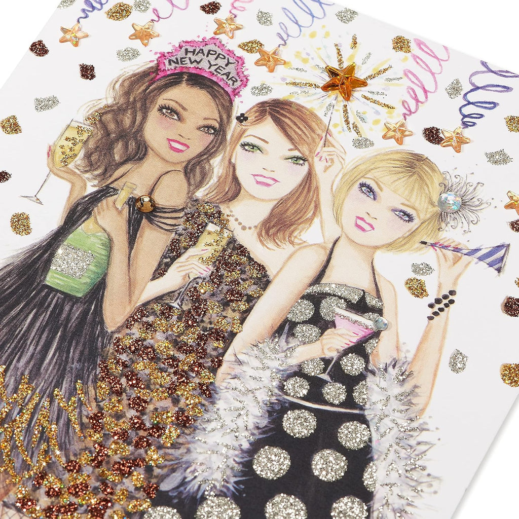 Ring in the new year with sparkle, style, and sisterhood. Featuring Bella Pilar’s signature fashion-forward illustrations, this dazzling card captures three glamorous girlfriends dressed to the nines, toasting under a flurry of confetti and streamers. From sequin dresses to feathered accessories and festive tiaras, every detail radiates New Year’s Eve energy and high-spirited charm.