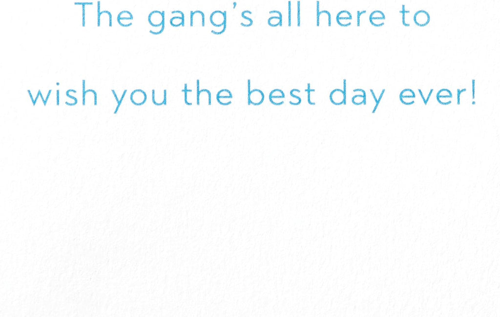 A pack of party pups in festive hats and balloon bouquets sets the tone for the best day ever. This charming birthday card features a watercolor lineup of dogs ready to celebrate, complete with pom-pom embellishments for an extra pop of cheer. Perfect for dog lovers, big birthdays, or anyone who deserves a tail-wagging good time.
