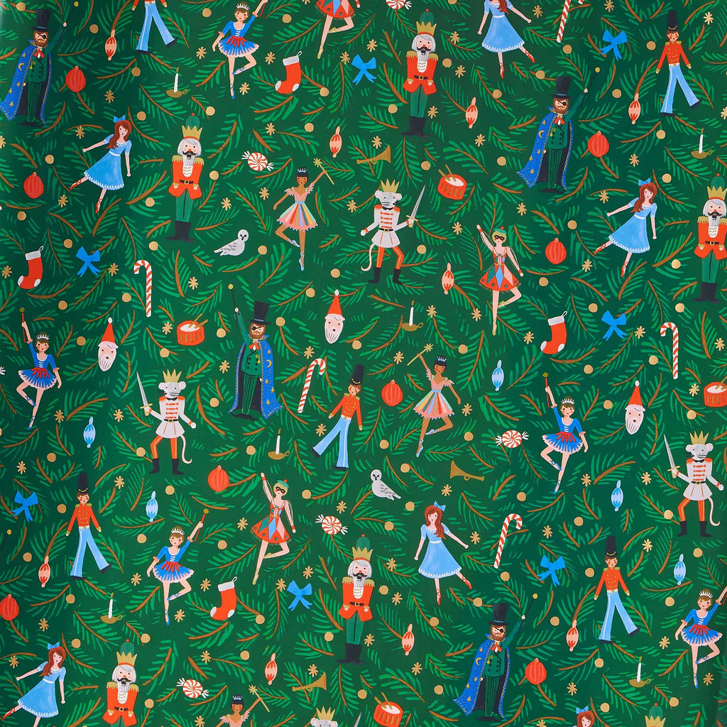 Dress up holiday presents and projects with our festive wrapping rolls, which feature luxurious paper adorned with colorful illustrations and sparkling gold foil accents. Inspired by the magic of the ballet, this design brings Clara, the Nutcracker, and the Mouse King to life—perfect for whimsical, storybook-ready gifting.