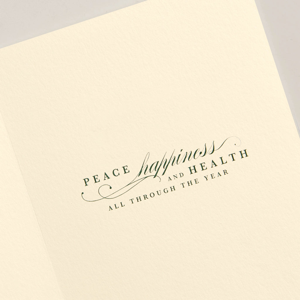Engraved on warm ecru paper using Crane’s signature craftsmanship, these notes offer a luxurious tactile experience perfect for heartfelt holiday messages. The design strikes a balance between natural beauty and refined simplicity—ideal for those who appreciate understated charm.