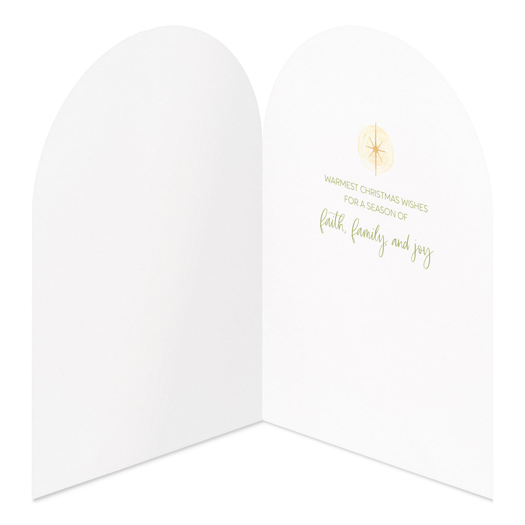 Delicately embossed and finished with gold foil script that reads “Silent night, Holy night,” each card evokes reverence and grace. Paired with matching envelopes lined in a soft olive green, these cards offer a timeless way to share blessings of peace and faith this holiday season.