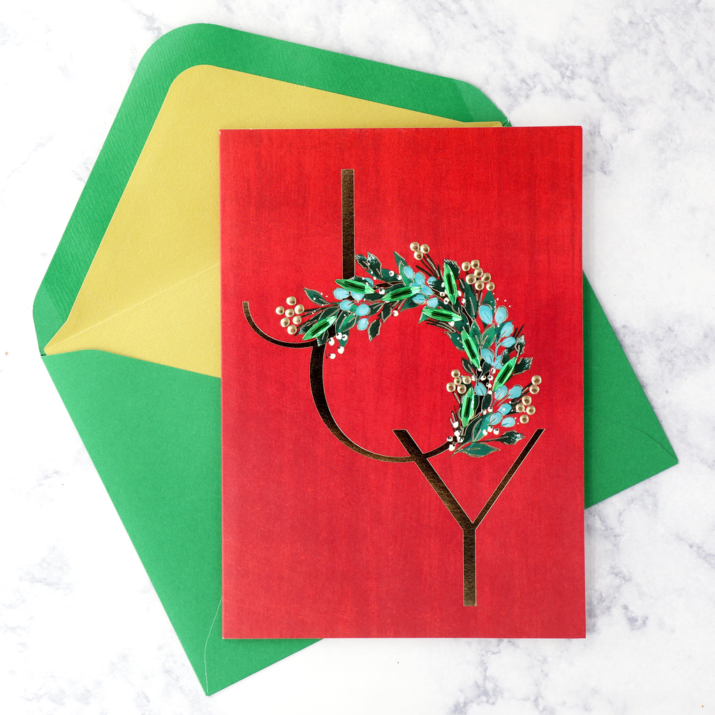 Handmade "Joy" Wreath Holiday Boxed Cards (Set of 8)