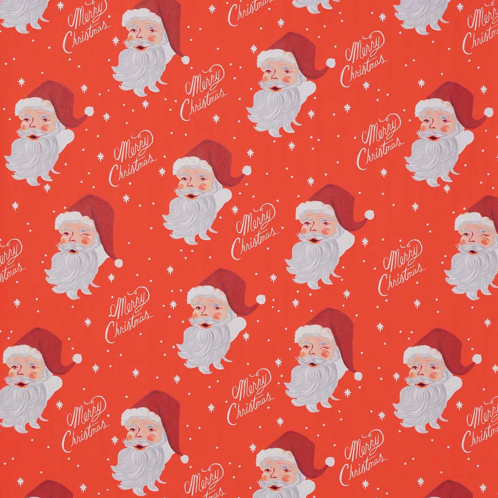 Bring a vintage sparkle to your holiday gifting with this cheerful Santa flat wrap. Featuring jolly illustrations of Santa Claus on a vibrant red background, this set includes three coordinating sheets printed in full color with a festive “Merry Christmas” script and falling snow accents. Perfect for wrapping gifts of all sizes or crafting merry displays, the sheets come rolled for crease-free perfection.