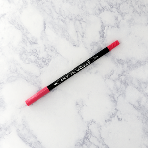 Add a playful punch of color to your creative toolkit with the Pink No. 9 Le Plume II Double Ended Color Pen by Marvy Uchida. This versatile pen features a fine tip on one end for detailed lines and writing, and a flexible brush tip on the other for effortless strokes and expressive lettering.