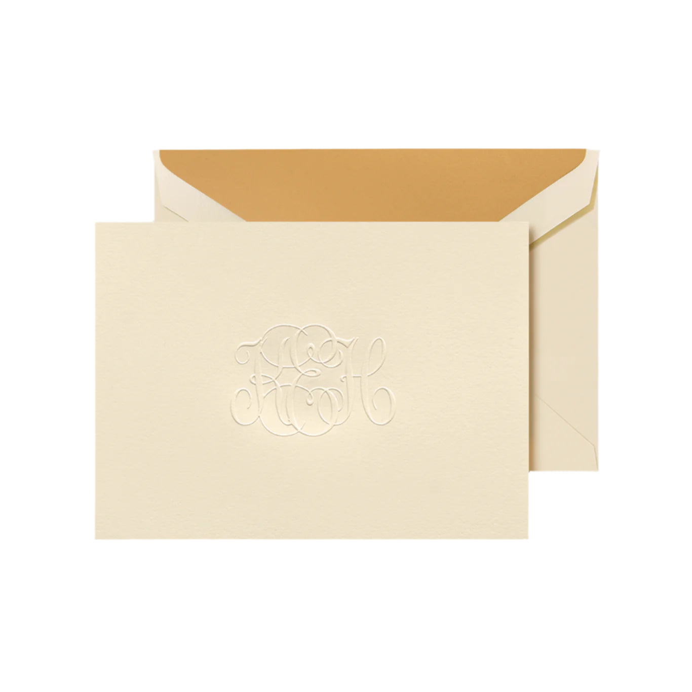 Materials are everything when it comes to choosing stationery that reflects your tastes and personality. This heavyweight, ecru paper feels wonderful to the touch, and blind embossing—a raised design without ink—draws attention to the exceptional quality. Your recipient will love the tactile experience of unfolding your message and watching the way the light plays on its sculptural cover.